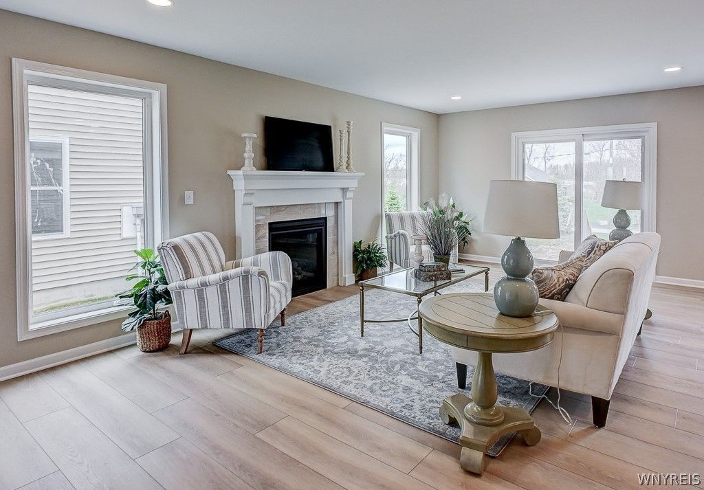 Introducing Marrano's newest townhome design - the Winston A, now available in the highly desirable Midtown Townhomes community. Perfectly situated near shopping, dining, entertainment, and major commuter routes, this brand-new townhome offers a low-maintenance lifestyle with an Association that handles exterior upkeep, giving you more time to enjoy the things you love. Inside, a spacious Family Room seamlessly connects to the Kitchen and Dinette area, creating an inviting open layout ideal for everyday living and effortless entertaining. The second floor features two bedrooms, each with its own private bath for added comfort and convenience. A first-floor laundry/mudroom, guest half bath, attached 2-car garage, and a full basement-perfect for storage or future finished space-ensure this home meets a variety of lifestyle needs. Stylish, on-trend features are included throughout, such as a cozy gas fireplace, quartz countertops, white maple cabinetry, luxury vinyl flooring, recessed lighting, tankless water heater, gas furnace, and both gas and electric appliance hook-ups. With modern amenities and thoughtful design, the Winston A delivers exceptional value and easy living in an unbeatable location. The Midtown Townhomes model at 120 Cloverleaf Ct #1, Depew, open Saturday-Sunday, 1-5 p.m.( Taxes TBD.)