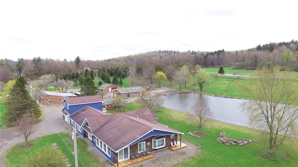 Welcome to Hilltop Ponds Rambling Ranch! This lovely property really is the whole package: beautiful, large rambling ranch w/ room to expand; workshop with retail space on separate electric meter; guest house; multiple entertaining spaces overlooking the LOWER pond; upper pond is a wildlife oasis; incredible VIEWS + additional outbuildings. The well-appointed Entry: storage, cabinets & views of the lower pond. The Sitting Room is perfect for quiet reading. Eat-in kitchen: acres of counter space & nice breakfast bar. Off the kitchen is an updated full bath. The living room: a cathedral ceiling & great built-ins. The large primary bedroom features multiple closets, built-in storage, huge window seat/day bed + private door to the back deck, en suite 1/2 bath. Formal dining room provides space for even the biggest gatherings; doors to the west deck. Second bedroom with loft bed. The 2nd story addition over the garage is an unfinished blank slate: Wired, easily plumbed- the perfect spot for a studio with the best views in the house, additional bedroom or even a small rental unit with separate entrance. Handicapped accessible In-law Suite: open floor plan- sleeping & living area + kitchenette. Large closet off kitchenette plus walk-in closet connects to the primary suite for quick emergency monitoring. Imagine your sprawling escape with a place for all your hobbies and room for friends and family. Year-round guest house includes kitchen, bunks, full bath, heat & a rec room w/ pool table. Work shop: designed for a contractor. Separate electric. Plenty of lighting, heat, restroom, lumber storage. Build, create, run a business just steps from the delightful sanctuary of home. Dreaming of a full-service campground or Bed & Breakfast? The shed is perfect for kayak, fishing pole and canoe storage. Detached garage to store all your grounds maintenance equipment. The workshop could become a campground store with clubhouse and manager's office. Landscaped w/ serenity in mind, enjoy the multiple decks, patios, trails and even pond-side hammock. Incredible views in all directions. Plus, this well-crafted home is only minutes to Ambler State Forest.