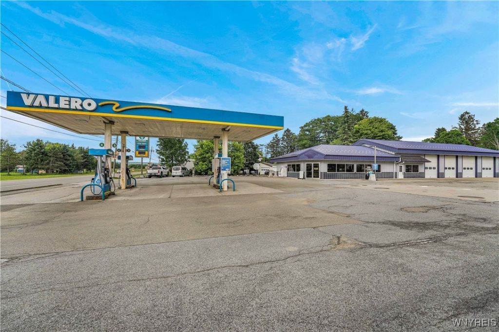 An outstanding opportunity to own a high-exposure, full-service commercial property in the growing community of Franklinville, NY. This versatile site includes a gas station, convenience store, and four-bay automotive shop, all on one commercially zoned parcel. Whether you're an owner-operator or investor, this property is well positioned for immediate use and long-term upside. Strategically located on Route 16 with over 5,500 daily vehicles, the property sits less than half a mile from the brand-new Great Lakes Cheese factory, which employs up to 500 people and sees over 200 in- and outbound trucks per day. That level of activity offers major potential for fuel, retail, and service-based business. The momentum in the area is real-and this site is right in the middle of it. The convenience store includes a 25-foot cooler, food prep area, restroom, utility room, and a large 45' x 35' open retail floor-ideal for groceries, beverages, or prepared foods. Two sizable offices connect the store to the shop, providing flexible use for admin, dispatch, or storage. The four-bay garage includes high ceilings, a 70' x 35' open work area, a 16' x 35' mezzanine for parts storage, its own restroom, and a waste oil heater-ready for auto service, fleet maintenance, or specialty work. The gas station features a covered and lighted canopy, electronic signage, and multiple fueling stations, all with excellent road visibility. This is a unique opportunity to acquire a fully functional commercial property with multiple income streams and prime exposure to one of the biggest economic developments the region has seen in years. Perfect for someone ready to capitalize on location, traffic, and entrepreneurial potential. Also listed for lease under MLS B1617197.